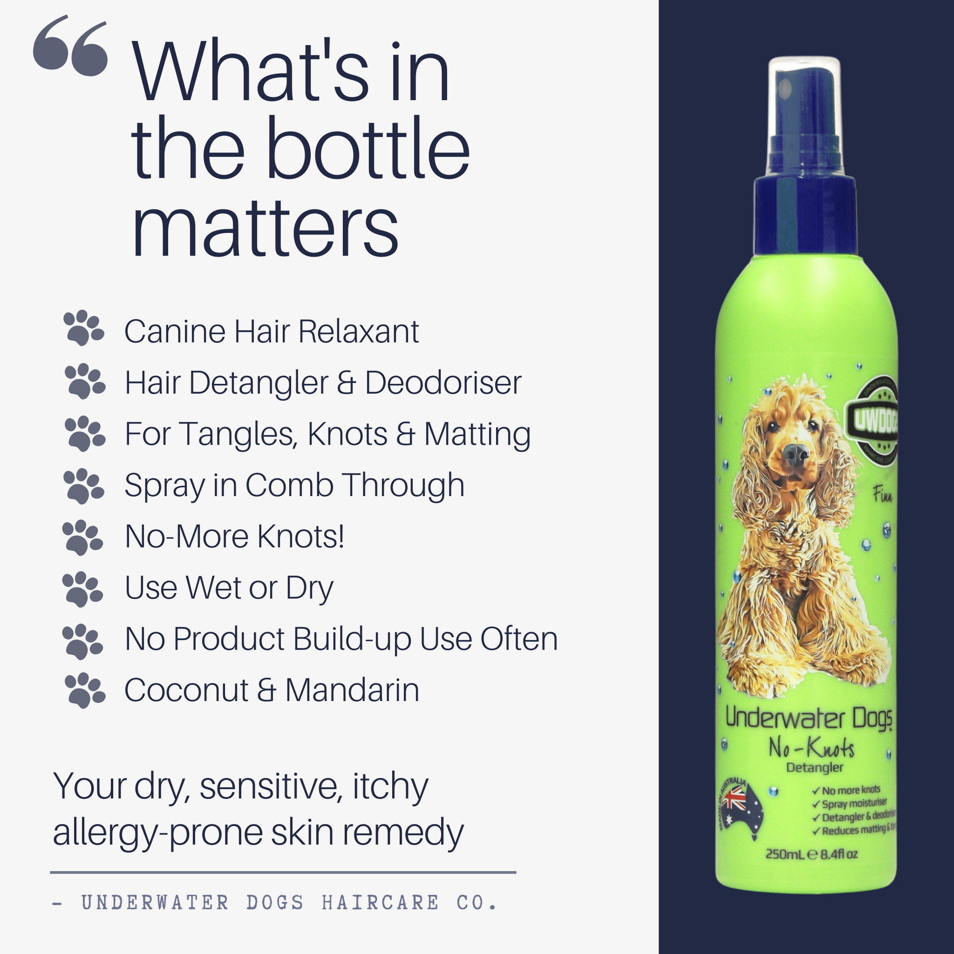 Underwater Dogs No-Knots Detangler & Deodoriser – Leave-In Spray for Dogs